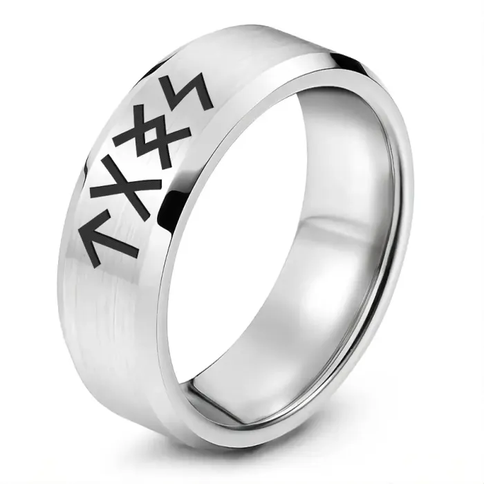 Мужское кольцо из нержавеющей стали с лазерной гравировкой рунической формулы.
