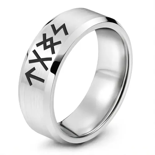 Кольцо с рунической формулой 'Мужская слава' выполнено из нержавеющей стали и украшено лазерной гравировкой. Этот аксессуар символизирует силу и уверенность, а также традиционно используется для привлечения внимания женского пола и создания гармонии в отношениях.