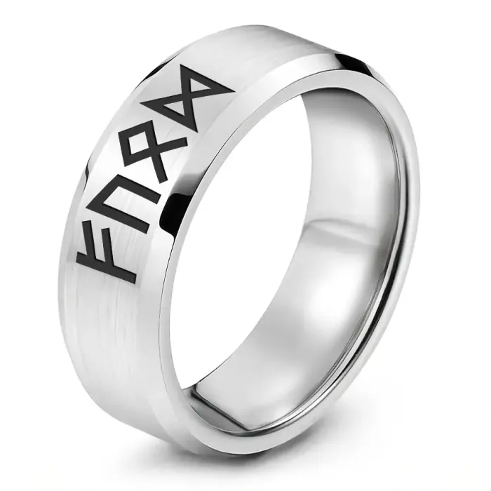 Кольцо с рунической формулой для карьеры и бизнеса. Изготовлено из нержавеющей стали с лазерной гравировкой.