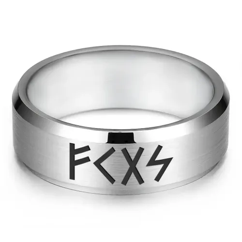 Кольцо из нержавеющей стали с лазерной гравировкой рунической формулы.