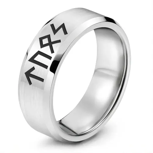 Кольцо с рунической формулой «Победа над конкурентами». Изготовлено из нержавеющей стали с лазерной гравировкой.