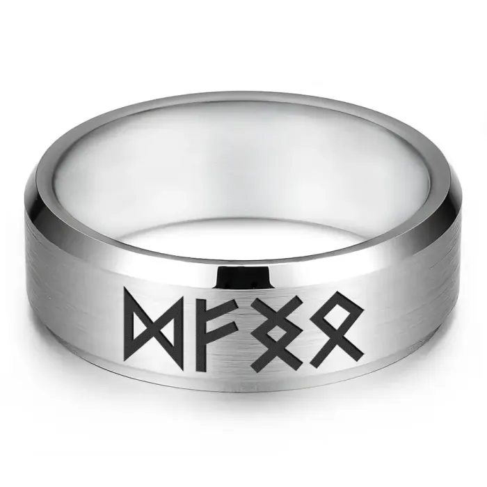 Кольцо с рунической формулой 'Изобилие в семье' из нержавеющей стали с лазерной гравировкой.