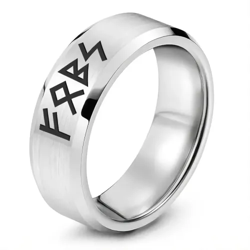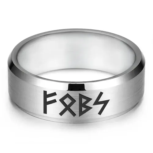 Кольцо с рунической формулой «Стабильный рост» из нержавеющей стали с лазерной гравировкой.