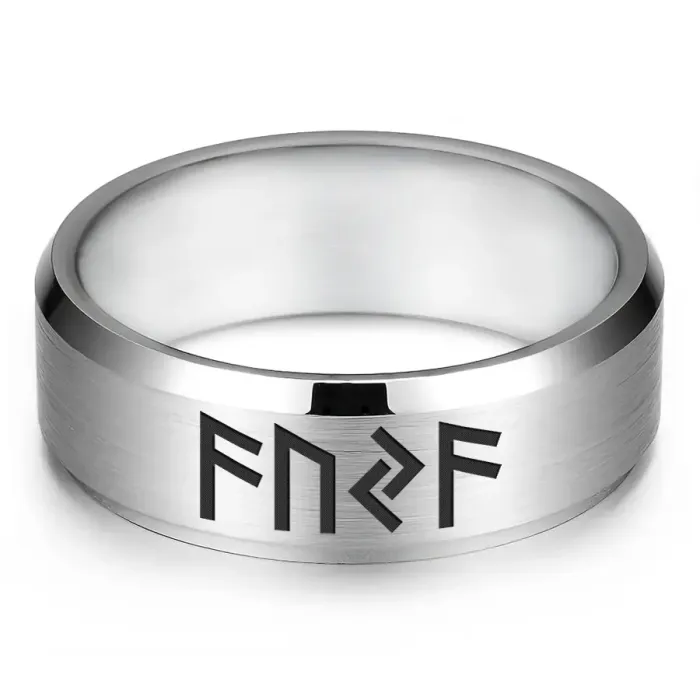 Кольцо из нержавеющей стали с лазерной гравировкой рунической формулы.