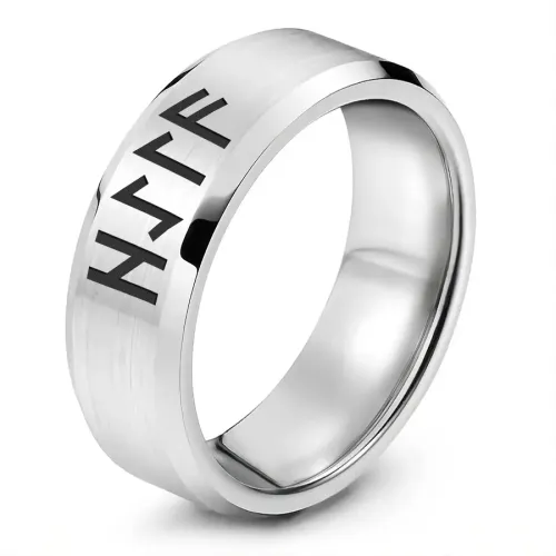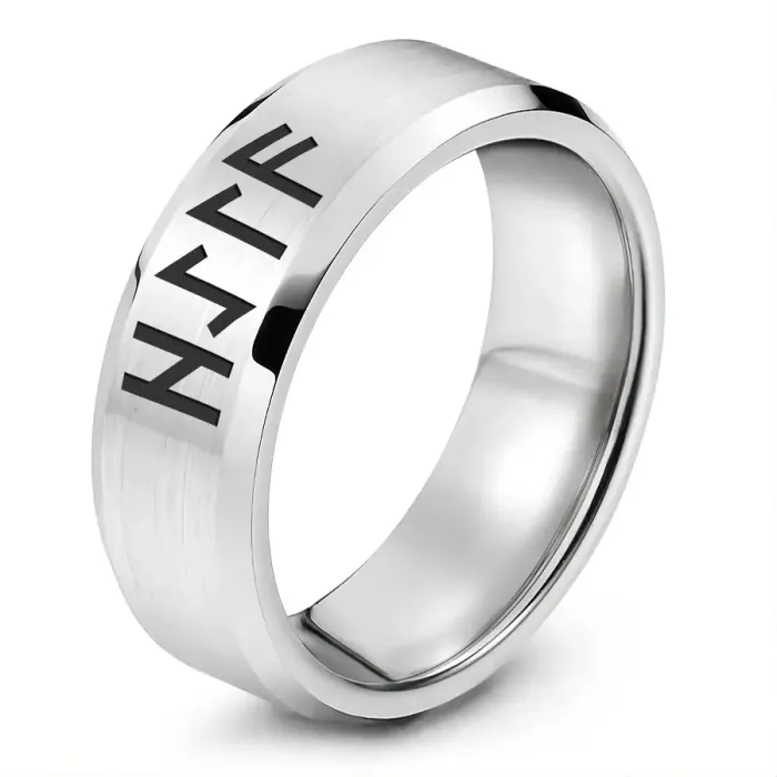 Кольцо с рунической формулой. Изготовлено из нержавеющей стали, украшено лазерной гравировкой.