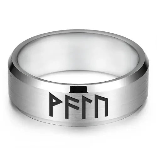 Кольцо из нержавеющей стали с лазерной гравировкой рунической формулы.