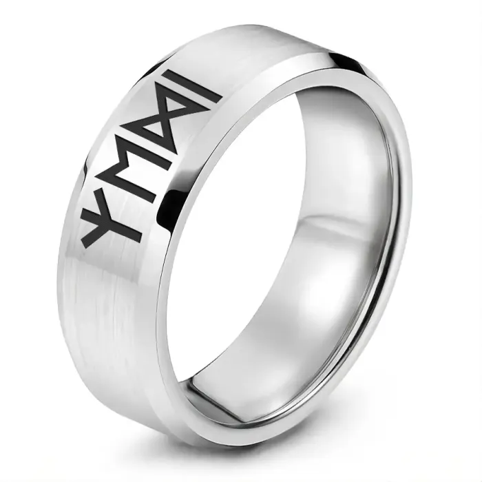 Кольцо с рунической формулой «Формула здоровья» изготовлено из нержавеющей стали с лазерной гравировкой.