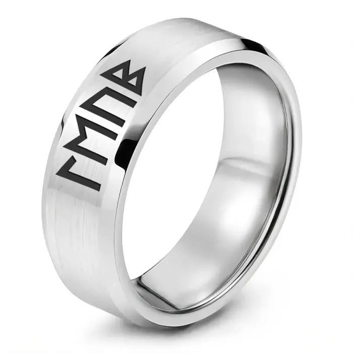 Кольцо из нержавеющей стали с лазерной гравировкой рунической формулы.