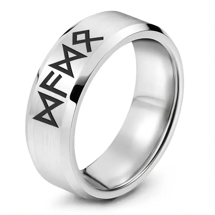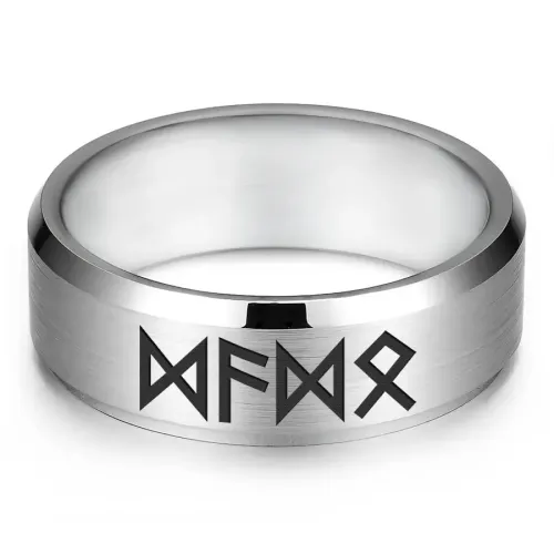 Кольцо с рунической формулой 'Поддержка богов и предков' — украшение из нержавеющей стали с лазерной гравировкой. Формула включает руны: Дагаз, Ансуз, Дагаз, Одал.