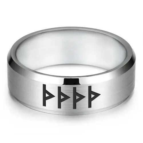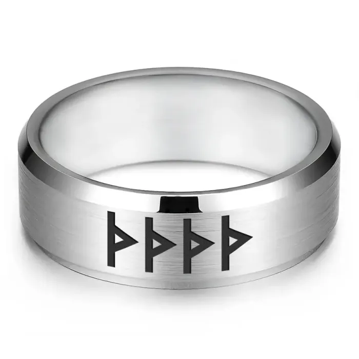 Кольцо с рунической формулой «Приворотное заклинание» из нержавеющей стали с лазерной гравировкой.