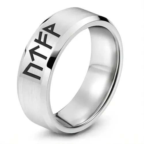 Кольцо с рунической формулой 'Работа и карьера' — украшение из нержавеющей стали с лазерной гравировкой.