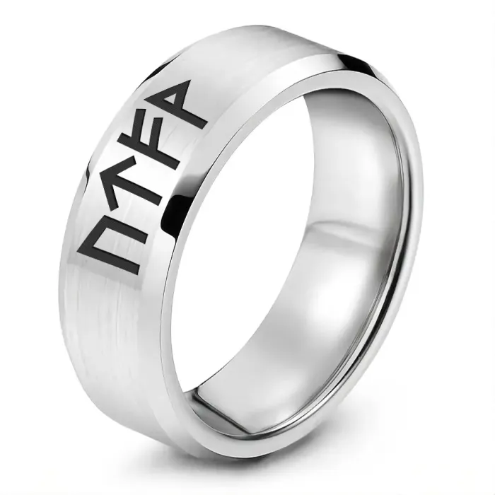 Кольцо из нержавеющей стали с лазерной гравировкой рунической формулы.