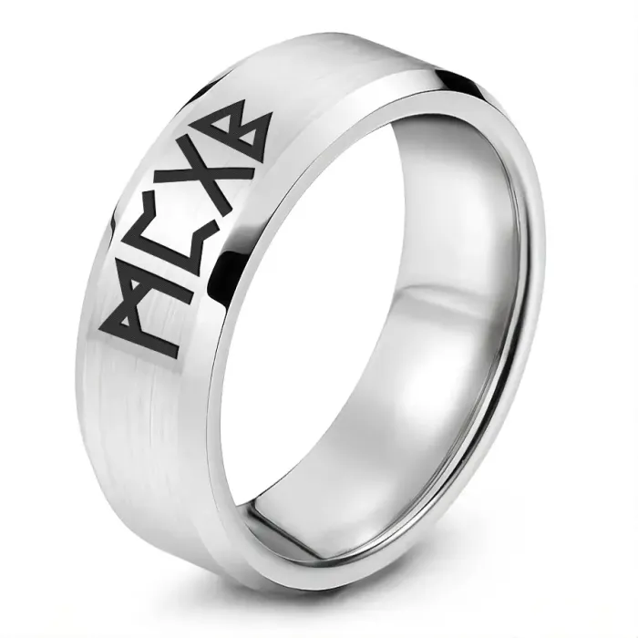 Кольцо с рунической формулой 'Поиск настоящей любви' — украшение из нержавеющей стали с лазерной гравировкой.