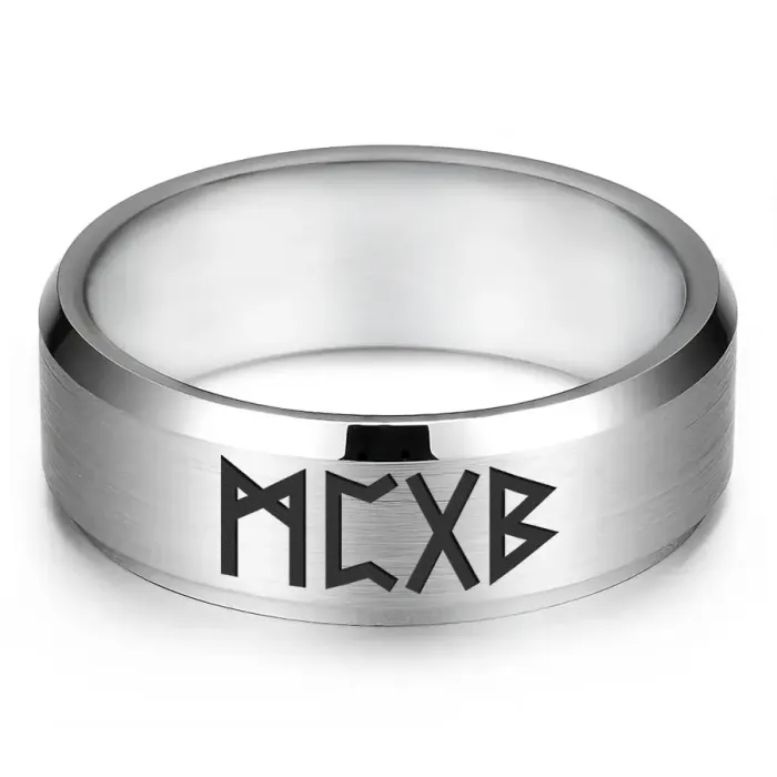 Кольцо из нержавеющей стали с лазерной гравировкой рунической формулы.