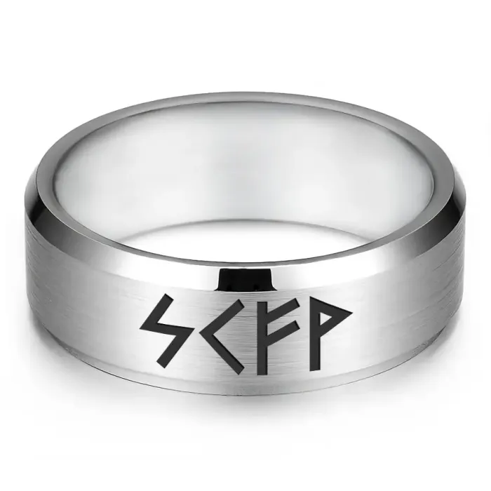 Кольцо с рунической формулой «Исполнение желаний» из нержавеющей стали с лазерной гравировкой.
