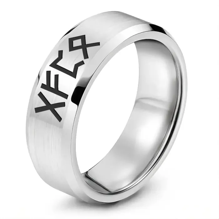 Кольцо с рунической формулой «Формула получения прибыли» выполнено из нержавеющей стали с лазерной гравировкой.