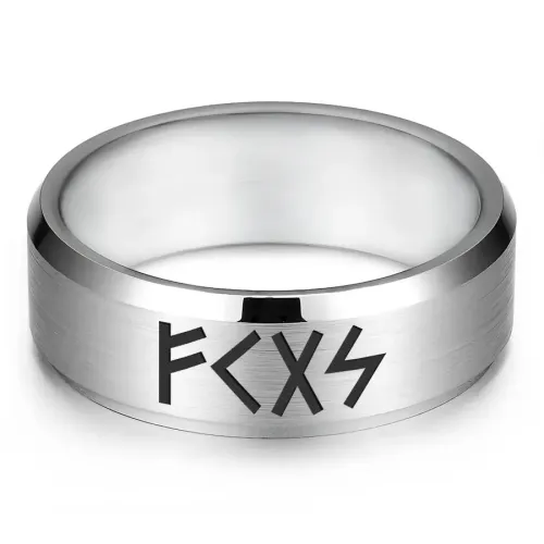 Кольцо из нержавеющей стали с лазерной гравировкой рунической формулы.