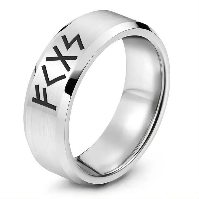Кольцо с рунической формулой. Изготовлено из нержавеющей стали с лазерной гравировкой.