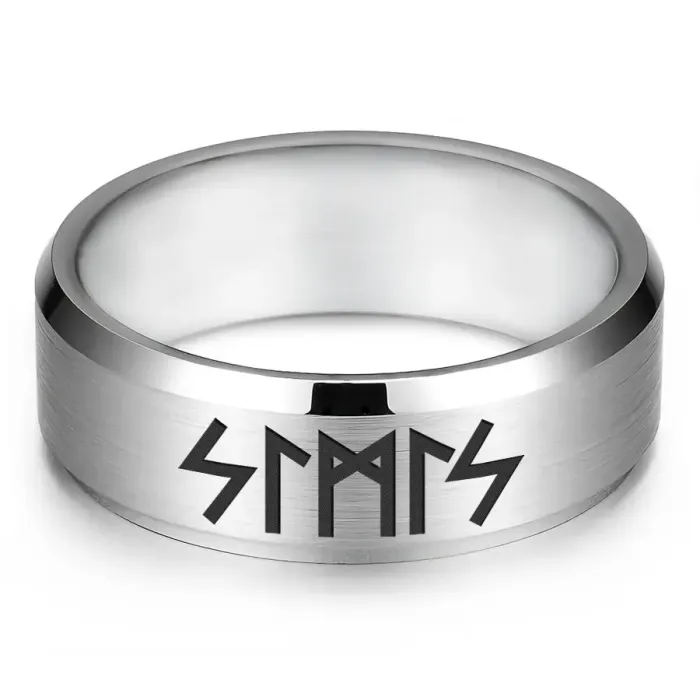 Кольцо с рунической формулой. Изготовлено из нержавеющей стали с лазерной гравировкой.