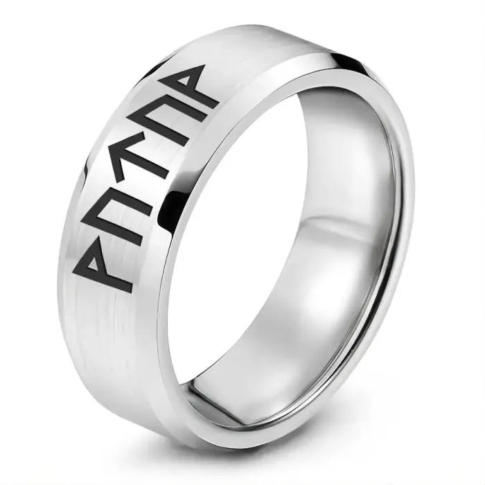 Кольцо с рунической формулой «Выход из депрессии» — сувенирный аксессуар из нержавеющей стали с лазерной гравировкой.