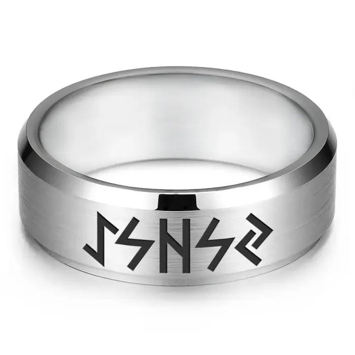 Кольцо с рунической формулой «Чистка и защита от негатива» выполнено из нержавеющей стали с лазерной гравировкой.