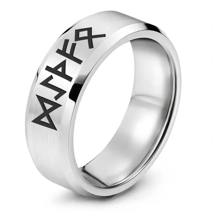 Кольцо с рунической формулой для привлечения денег. Изготовлено из нержавеющей стали с лазерной гравировкой.