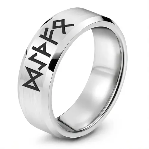 Кольцо-амулет с рунической формулой для привлечения денег. Изготовлено из нержавеющей стали с лазерной гравировкой.