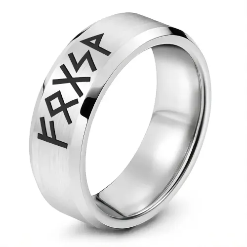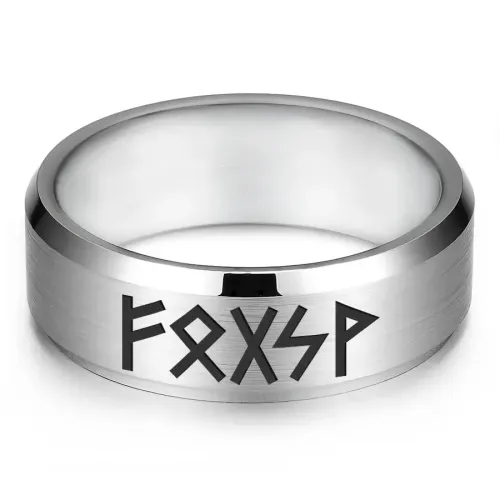 Кольцо с рунической формулой. Изготовлено из нержавеющей стали, украшено лазерной гравировкой.