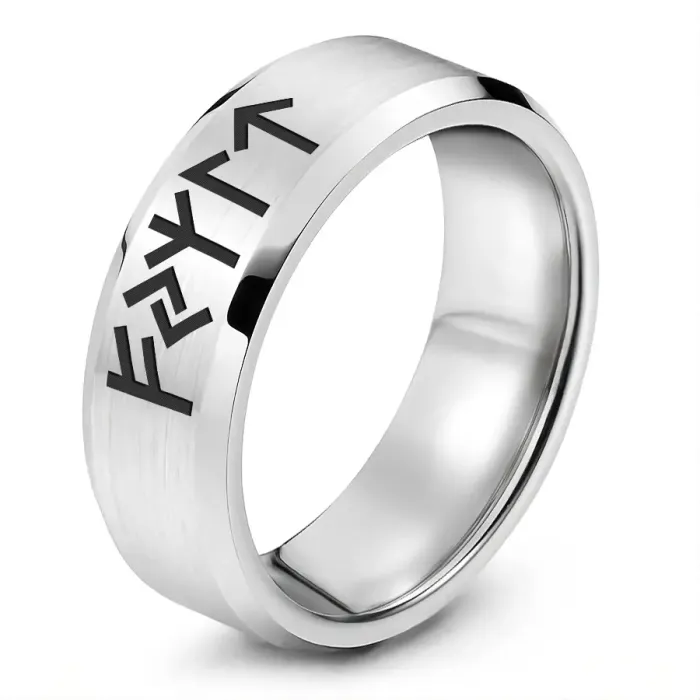 Кольцо из нержавеющей стали с лазерной гравировкой рунической формулы.