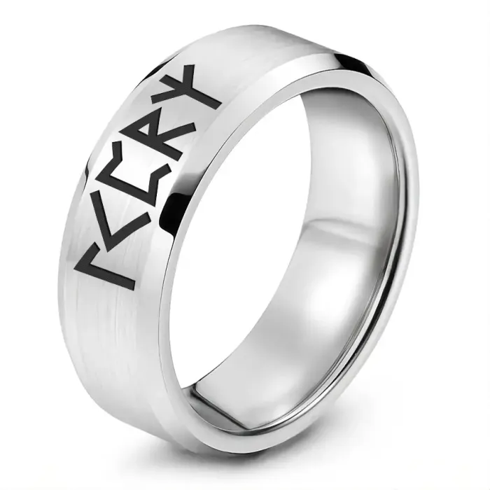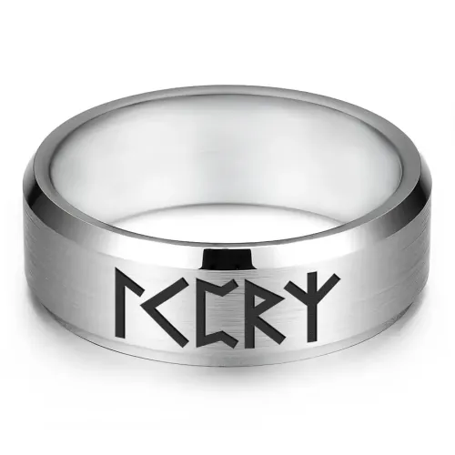 Кольцо с рунической формулой «Усиление интуиции» из нержавеющей стали с лазерной гравировкой.