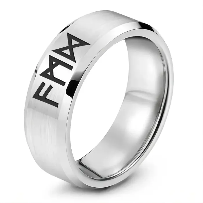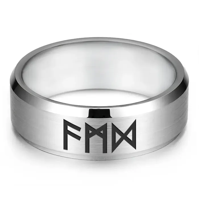 Кольцо с рунической формулой. Изготовлено из нержавеющей стали с лазерной гравировкой.