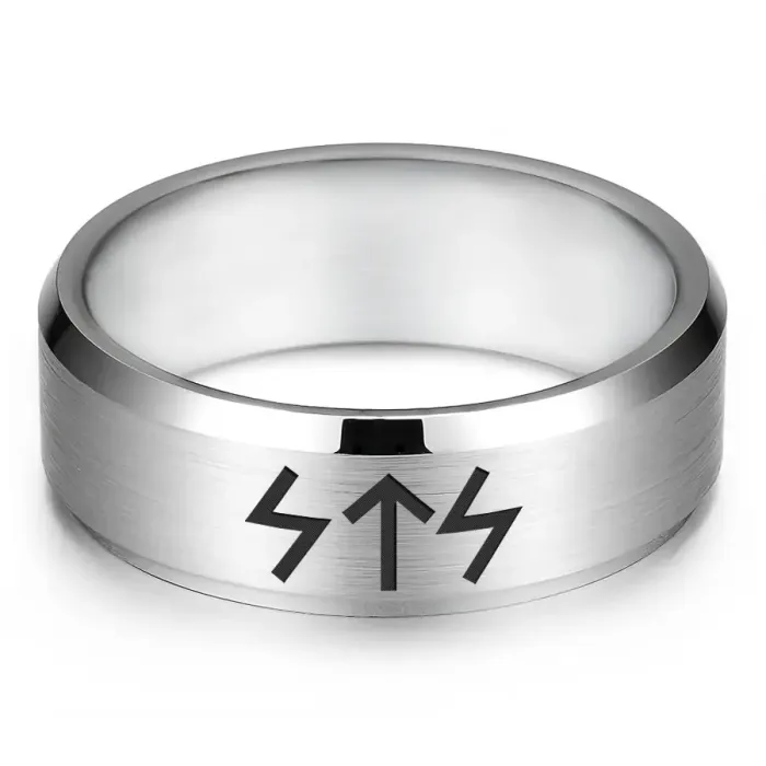 Кольцо с рунической формулой «Победа над злом» — сувенирный аксессуар из нержавеющей стали с лазерной гравировкой.