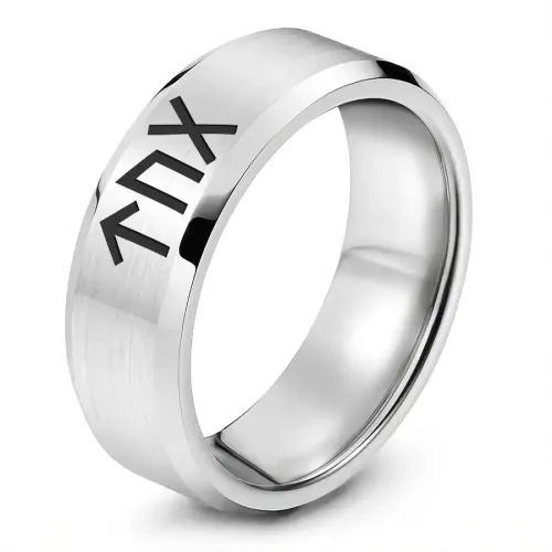 Кольцо с рунической формулой «Удача в любви». Изготовлено из нержавеющей стали с лазерной гравировкой.
