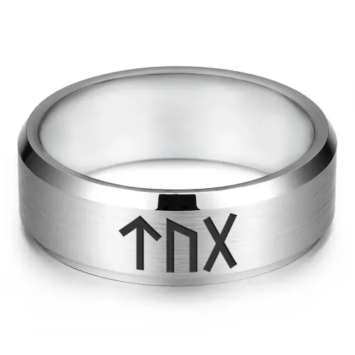 Кольцо из нержавеющей стали с лазерной гравировкой рунической формулы.