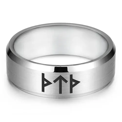 Кольцо-сувенир из нержавеющей стали с лазерной гравировкой рунической формулы.