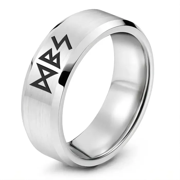 Кольцо с рунической формулой «Обновление и духовное очищение» — сувенирное украшение из нержавеющей стали с лазерной гравировкой.