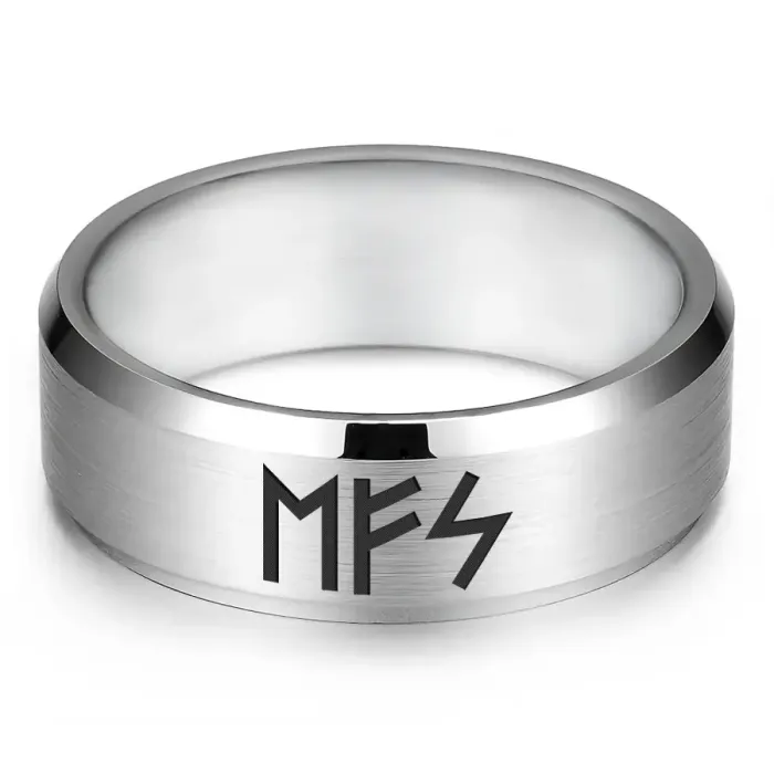 Кольцо из нержавеющей стали с лазерной гравировкой рунической формулы.