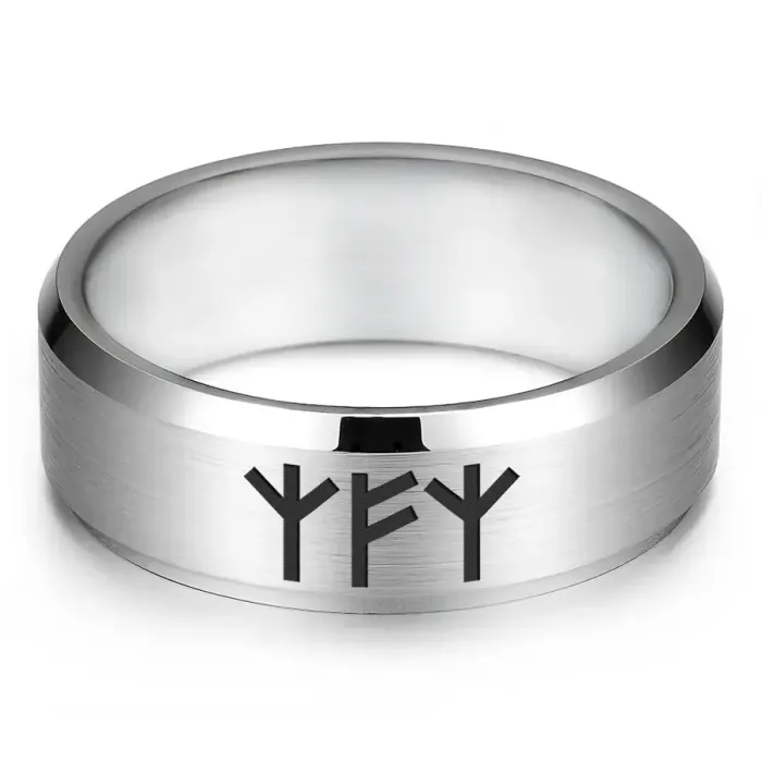 Кольцо с рунической формулой. Изготовлено из нержавеющей стали с лазерной гравировкой.