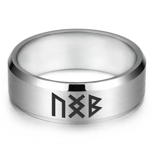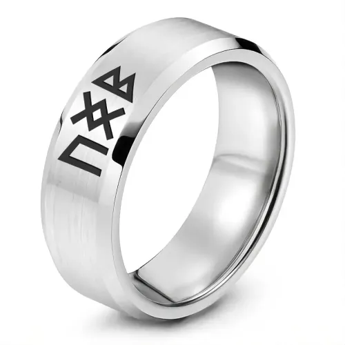 Кольцо с рунической формулой из нержавеющей стали с лазерной гравировкой.