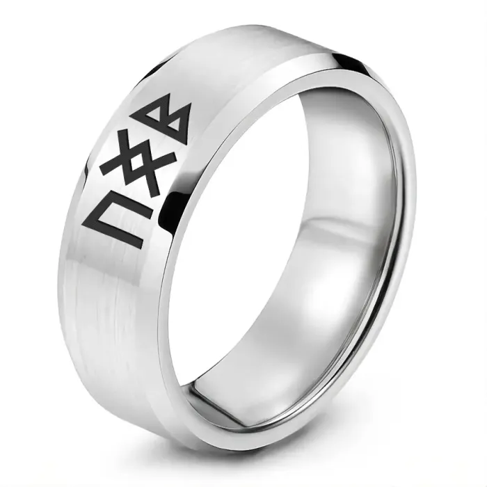 Кольцо с рунической формулой «Обновление и оздоровление тела» — аксессуар из нержавеющей стали с лазерной гравировкой.