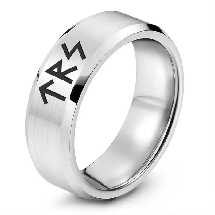 Кольцо из нержавеющей стали с лазерной гравировкой рунической формулы.