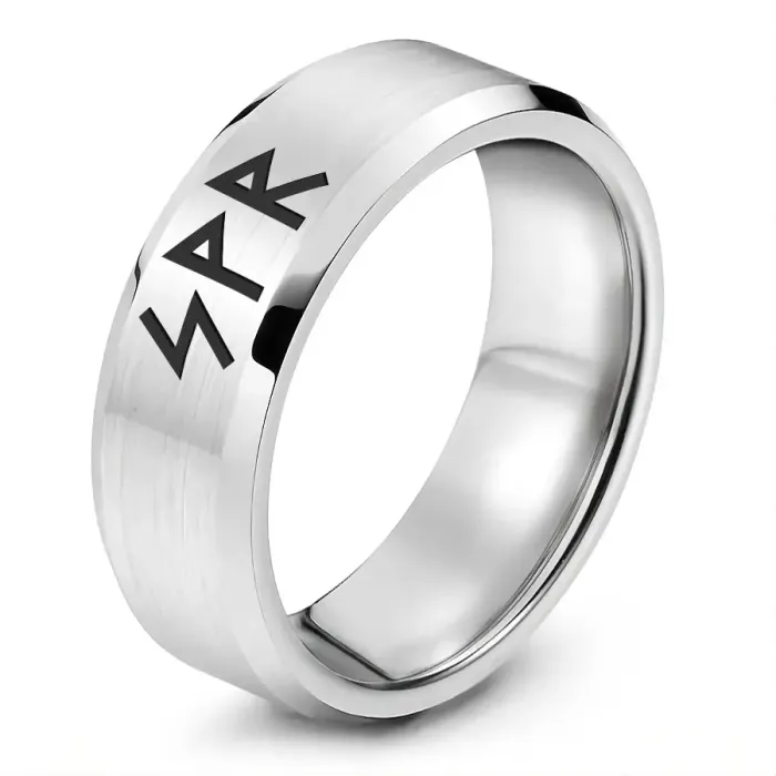 Кольцо из нержавеющей стали с лазерной гравировкой рунической формулы.