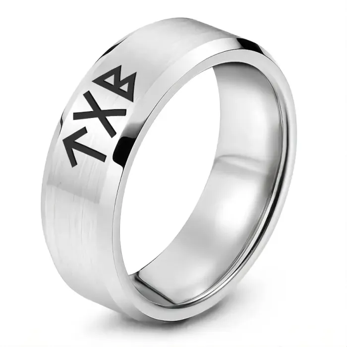 Кольцо с рунической формулой «Коррекция отношений» из нержавеющей стали с лазерной гравировкой.
