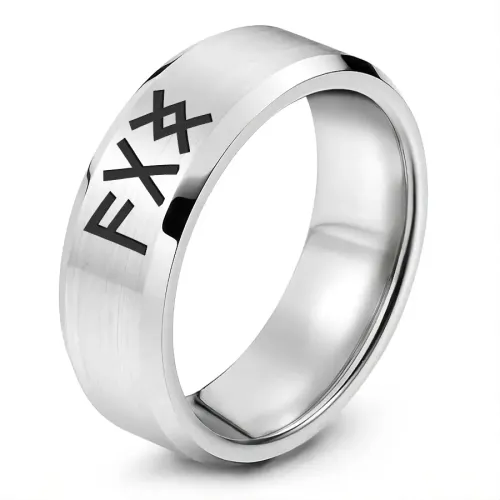 Кольцо с рунической формулой «Гармония в отношениях» из нержавеющей стали с лазерной гравировкой.