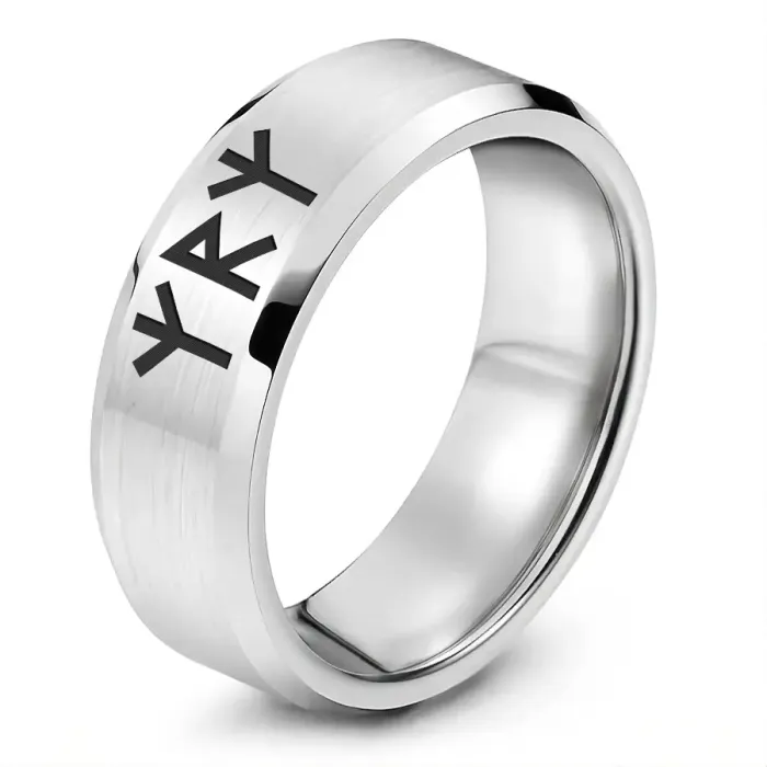 Кольцо-амулет из нержавеющей стали с лазерной гравировкой рунической формулы.