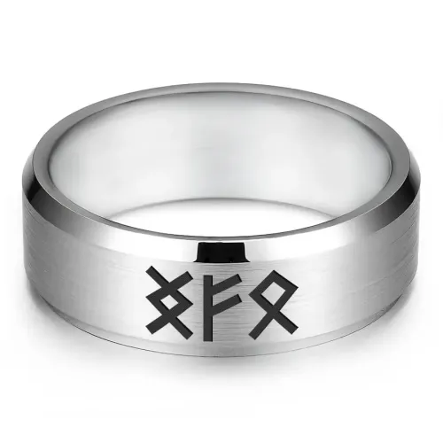 Кольцо с рунической формулой 'Денежный канал' — это украшение из нержавеющей стали с лазерной гравировкой.