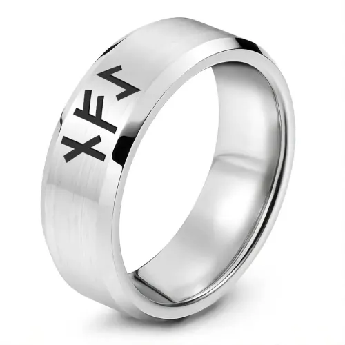 Кольцо с рунической формулой Преодоление кризиса — аксессуар из нержавеющей стали с лазерной гравировкой.