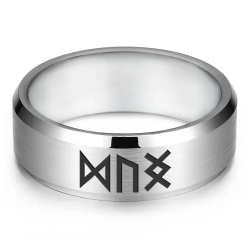 Кольцо из нержавеющей стали с лазерной гравировкой рунической формулы.