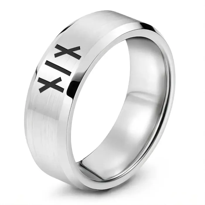 Кольцо с рунической формулой «Самопознание» — сувенирный аксессуар из нержавеющей стали с лазерной гравировкой.