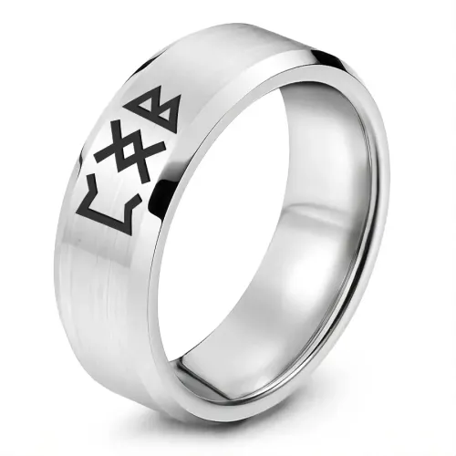 Кольцо с рунической формулой Привлечение партнёра по судьбе изготовлено из нержавеющей стали с лазерной гравировкой.